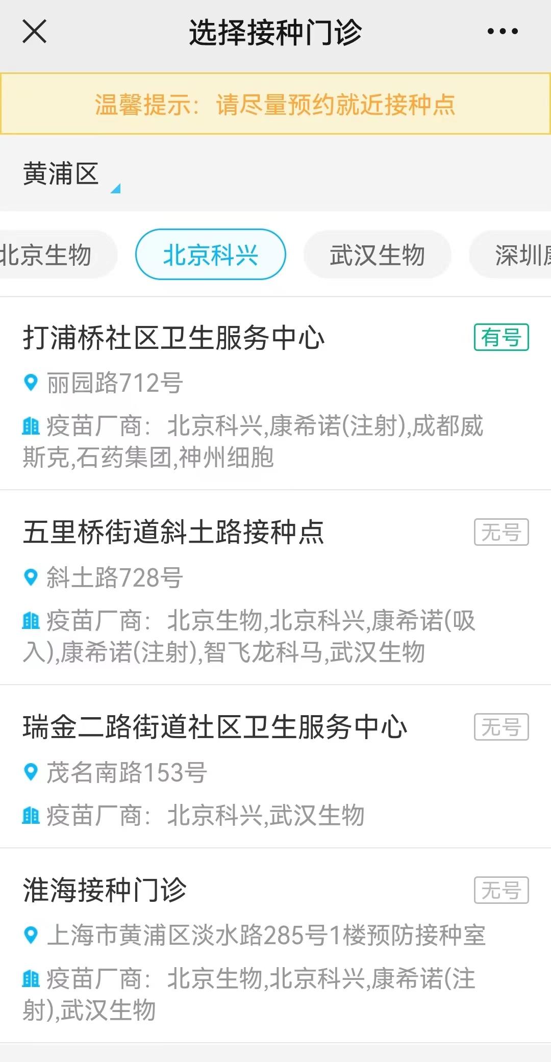 上海部分接种点科兴新冠疫苗无号可约